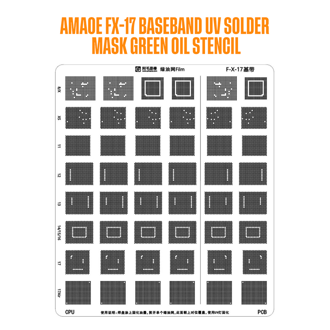Amaoe FX-17 Baseband Green Oil BGA Reballing Stencil for iPhone X to 17Pro Max Baseband